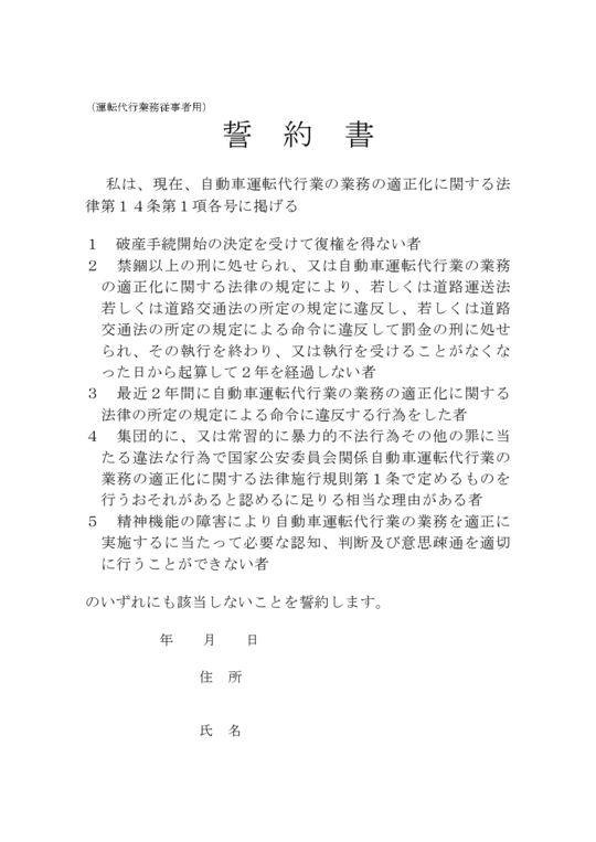 運転代行業務従事者用誓約書