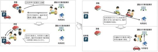 ・タクシーで酔客等を運送するとともに、酔客等の自動車を別の運転者が輸送するもの(タクシー代行)