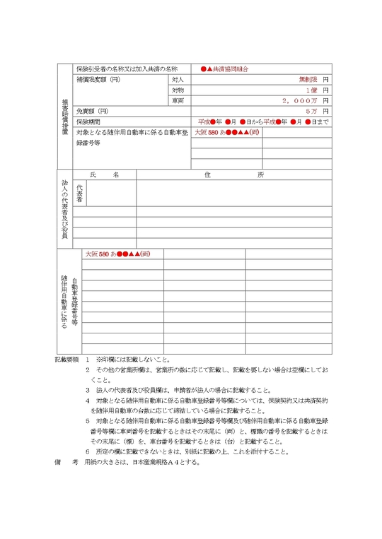 | 損害賠償措置を証する書類(代行車、随伴車ともに必要)(※注記2※) | 必要 | 必要 |
