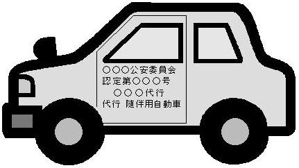 同様に随伴用自動車についても、自動車運転代行業者の名称(又は記号)、認定を行った都道府県公安委員会の名称、認定番号及び「代行」「随伴用自動車」の文字を車体に表示する必要があります。