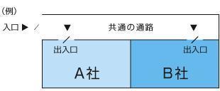 同じフロアに入居している以上、他法人と同じ通路を使用するのは仕方ありませんが、少なくとも自分の事務所と同フロアに入居する他法人がともに出入り口を設けていなくてはなりません。つまり、各事務所への来客者がそれぞれ他社を通ることなく出入りできることが必要です。
