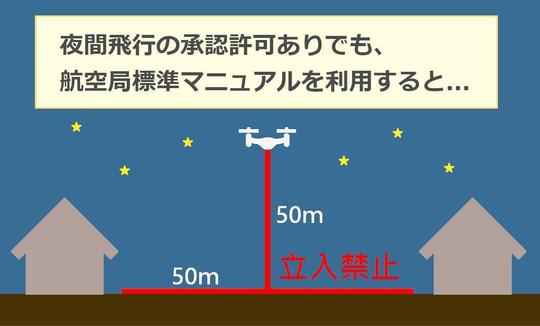 現実問題、この標準マニュアルで夜間飛行ができる場所はかなり限られることとなります。