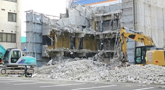 解体工事の例: 古い建物を完全に取り壊す工事。