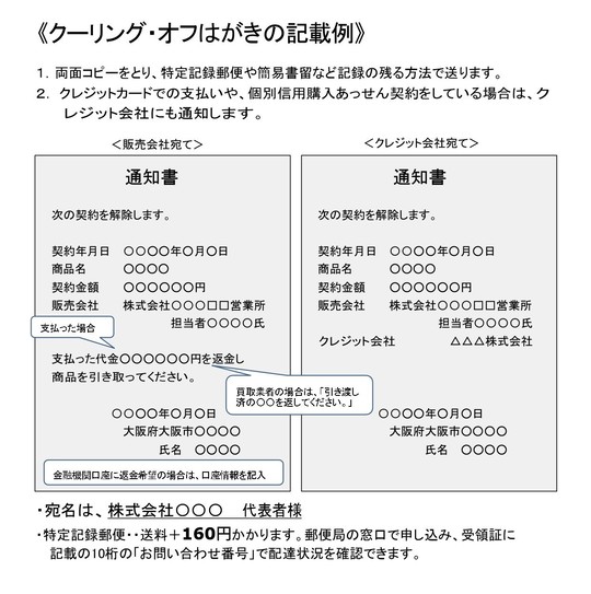 クーリング・オフ通知の記載例