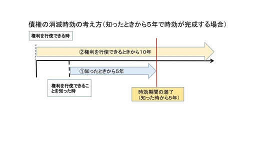 権利を知ったときから5年: 自分が権利を持っていることを知った時点から5年間、その権利を行使しなければ、時効が成立する可能性があります。