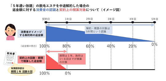 脱毛のために通う標準的な期間・回数 と 実際の契約内容(有償提供部分)にギャップがある