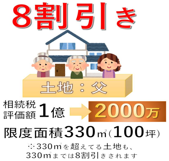 被相続人と同居していた親族(主に子や孫など)がその宅地を相続し、相続開始以後も引き続きその宅地に居住していることが条件です。