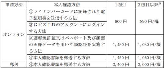 手数料は以下の通りです(自分で申請する場合)。