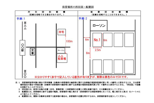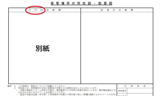 所在図は既に車庫証明を取得している申請者の旧自動車と、本拠、保管場所位置が同一の場合は記入を省略できます。