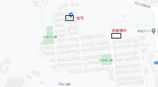 別途、地図をGoogleマップで印刷した場合でも、自宅(使用の本拠)の位置と車庫(保管場所)の位置にペンやマーカーなどで分かりやすく印をつけたりするのが良いでしょう。