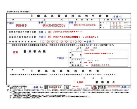 また、集合駐車場などの場合は、どの場所が車庫なのかを明記し、番号も記載する必要があります。調査員の方が、どの場所が保管場所になるのか分かるように書くことが重要です。