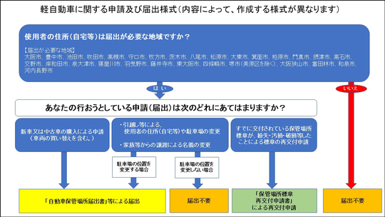 例えば、車庫証明(軽自動車の場合は「車庫届出」)が必要な地域に住んでいて、駐車場の位置が車庫証明(車庫届出)が不要な地域という場合でも車庫証明(車庫届出)は必要です。